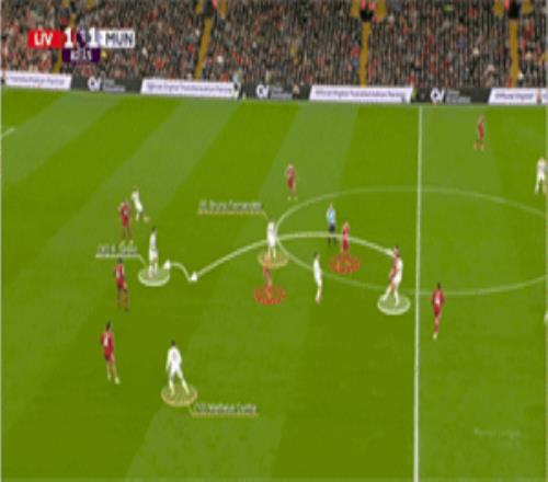 这战术变化产生了很大的效果,库尼亚经常大范围回撤,帮助布鲁诺·费尔南德斯和卡塞米罗控制中场,并迫使利物浦防守队员离开自己的位置,这帮助姆贝莫在边路觅得空间。