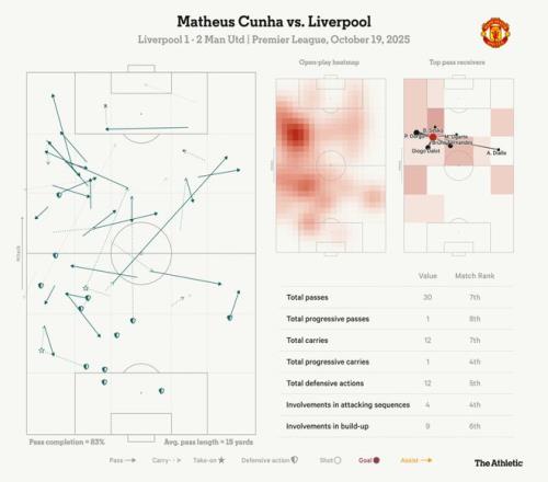 但库尼亚有自己的特点,对现在的曼联有用。对阵利物浦的双红会中,阿莫林决定不用中锋,而是让库尼亚、芒特和姆贝莫组成流动性三叉戟。