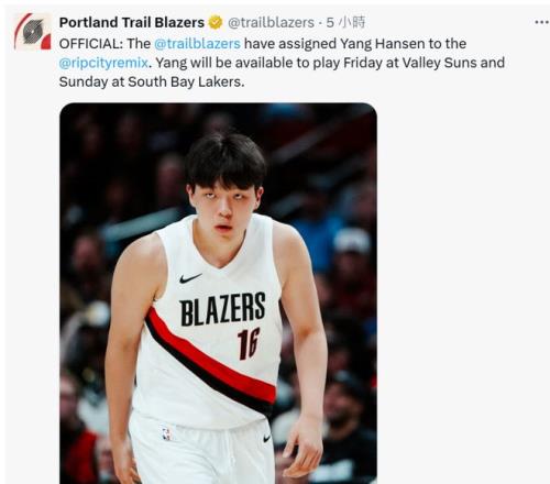 NBA方面在今天传来了重磅消息:波特兰开拓者队第三次下放杨瀚森到NBA发展联盟,还是加盟撕裂之城混音队。